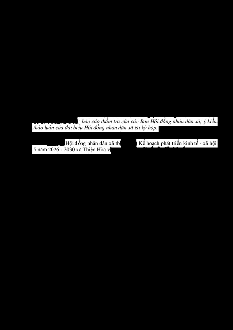 | Tiêu đề văn bản | Nghị quyết về Kế hoạch phát triển kinh tế - xã hội 5 năm 2026 - 2030 xã Thiện Hòa | ||