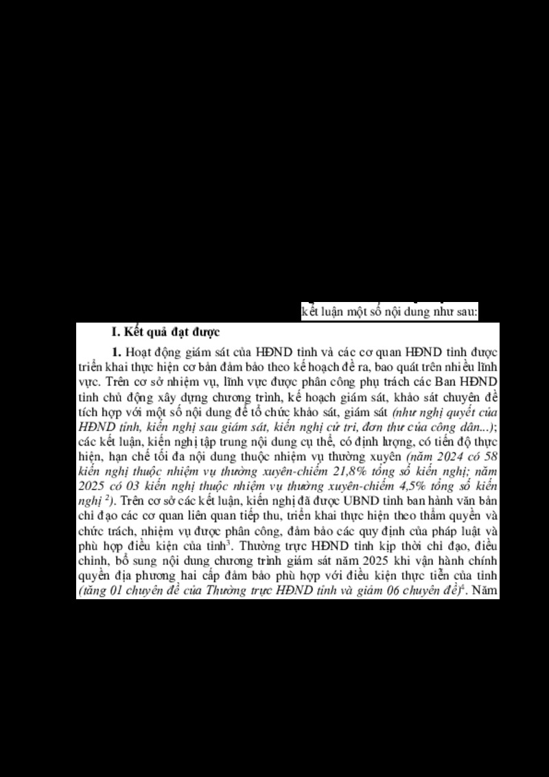 | Tiêu đề văn bản | Kết quả theo dõi, giám sát việc thực hiện các kiến nghị sau kiểm tra, giám sát của Hội đồng nhân dân tỉnh (Từ đầu nhiệm kỳ 2021-2026 đến tháng 8 năm 2025) | ||